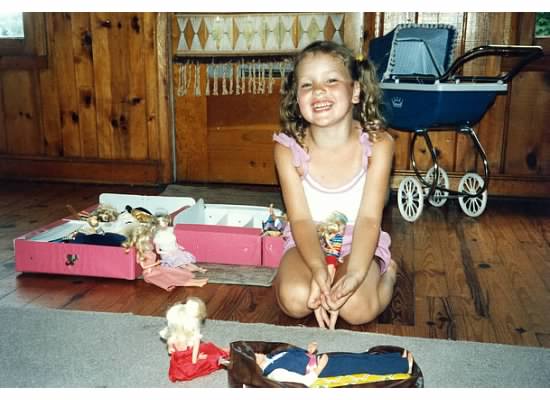 I introduced David to my old barbies when he was younger and had previously only played with GI Joes. He loved it…for about a week. We were having fun playing with barbies and GI Joes together (they make great husbands). We ended up at the mall and I let him pick out his own barbie. We went to another store and some cashier asked him if it was for a sister or for a friend and he said “no” and her reaction although not horrible, was enough to make him never want to play with barbies again because it was a girl thing. Good luck!