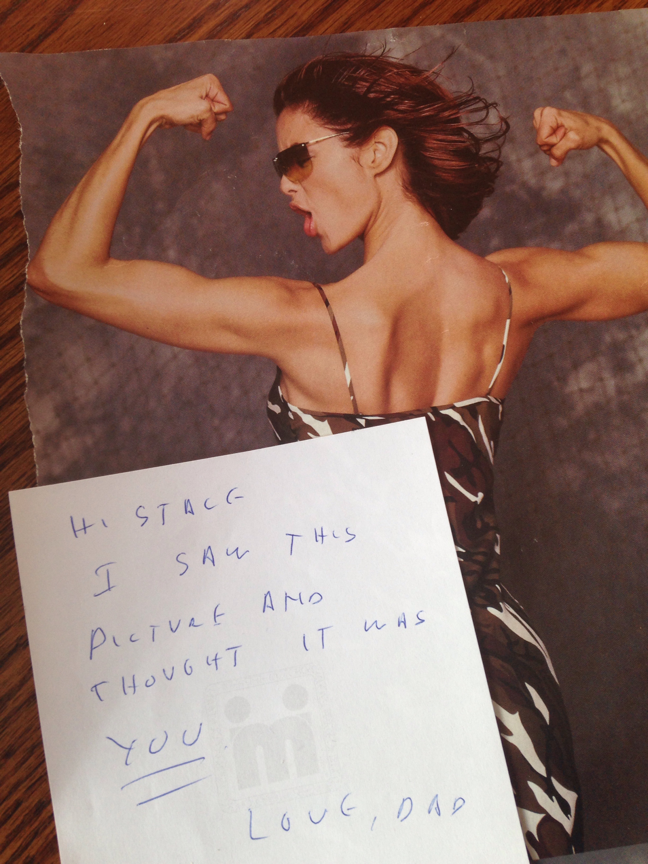 “HI STACE – I SAW THIS PICTURE AND THOUGHT IT WAS YOU. LOVE, DAD” (1998)