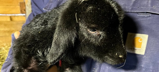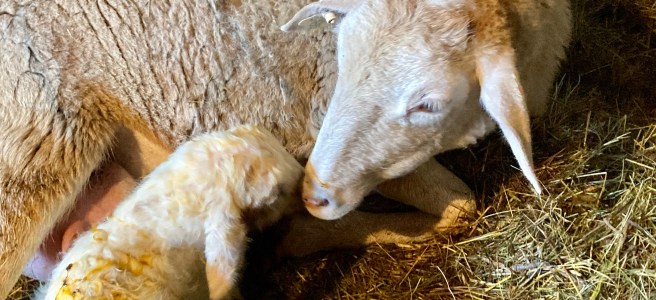 The ewe pushed the lamb away again and again as I tried getting her to nurse. It was cold out, and I didn’t want to risk the lamb’s temp dropping again, so I decided to do another colostrum tube-feeding. As I turned and climbed out of the pen, the lamb let out one small bleat, a cry for her mama.