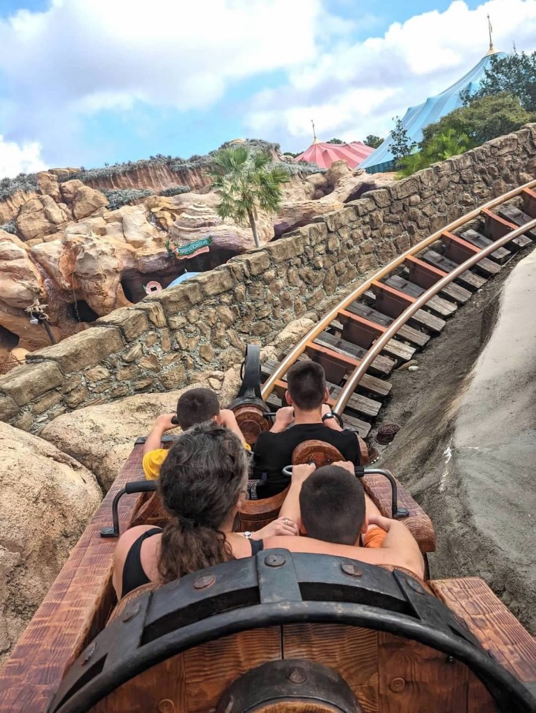We had an absolute ball. Chad, Gray and Reed did all the big kid rides and Miles and I had a ball riding the carousel and Small World 🙂 We DID stretch our courage and ride Seven Dwarfs Mine Train. Terrifying, but fun.