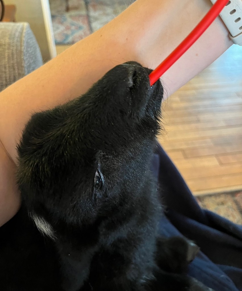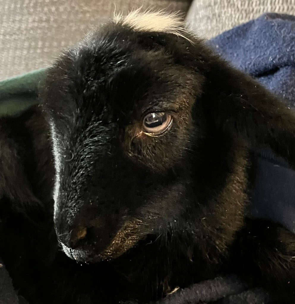 I could see the lamb was stuck, its left front foot and the first few inches of its muzzle outside the birth canal, right foot not yet visible. Noel panted and strained, but little progress was made. I didn’t grow up on a farm, but plenty of livestock books and Facebook groups and YouTube mentors have shown me the way, and I knew it was imperative that both of the lamb’s feet emerge from the birth canal first. I pulled on my arm-length OB exam gloves and slipped my hand inside Noel, feeling around for the stuck foot. I couldn’t find it at first, and I gently pushed the lamb back in so I would have more room to work. The pressure of Noel’s body and the force of life and birth squeezed my hand tightly.