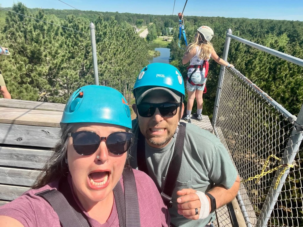 Let’s just start with my hubby and I ziplining off a 50-foot tower.