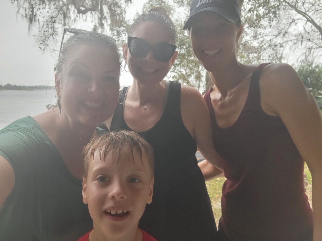 Im still looking back and smiling on a weather situation in Florida that had us all giggling. Kristen, Roxanne, Rox’s son and I were out on a big walk and got caught in a steady rain. We were absolutely drenched by the time we turned back onto Roxanne’s street. A friendly neighbor pulled over and gave an umbrella to Rox’s little boy. He looked at the three of us drowned rats and said, “You girls are on your own!”